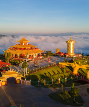 • Quần thể kiến trúc Phật giáo Kim Cương Thừa tại SamTen Hills Dà Lạt khu tâm linh tĩnh lặng với diện tích lên đến 2.016m2, nơi linh thiêng rộng lớn và đẹp như chốn bồng lai. Quý khách có thể tận hưởng nguồn không khí trong lành và năng lượng tích cực để chữa lành tâm hồn. Đến đây, du khách được chiêm ngưỡng những bức họa về thập phương chư Phật, Bồ Tát, Thánh Tăng… được tạo tác bằng mỹ thuật cổ xưa từ những họa sư đến từ Nepal. Nổi bật nhất là Đại Bảo Tháp Kinh Luân là Đại Bảo Tháp lớn nhất thế giới được Guinness World Record ghi nhận vào 11/12/2022: Đại Bảo tháp được làm bằng đồng tinh khiết, dát vàng 24K với trọng lượng lên đến 200 tấn, chiều cao 37,22m, đường kính 16,53m.