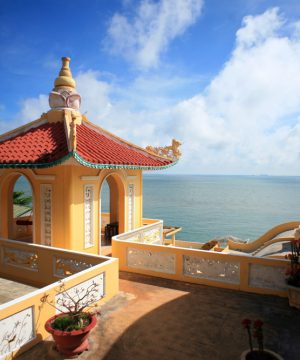 • Chùa Quan Thế Âm Bồ Tát có tên gọi đầy đủ là Phổ Đà Sơn Quan Âm Bồ Tát Tự. Tọa lạc dưới chân núi Lớn, trong chùa là một pho tượng Phật Bà Quan Âm cao 16m tay cầm bình Cam Lồ, đứng trên tòa sen và hướng nhìn ra biển cả.
